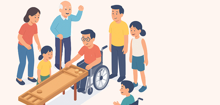 ○ 집중력 향상과 치매 예방에 좋으며, 장소의 제약 없이 즐길 수 있는 대표적인 킨볼, 셔플보드와 유사한 류의 스포츠입니다.